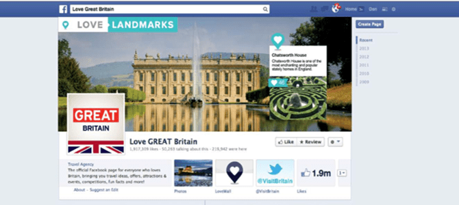 Joss Croft, Marketing Director at VisitBritain said: “Our Love GREAT Britain Facebook page has quickly developed into vibrant and valuable community for VisitBritain to interact with potential visitors and create new tourism business for Britain. Capitalising on the Royal Wedding, Queen’s Diamond Jubilee, the birth of Prince George and of course the 2012 Olympic and Paralympic Games, we were able to seed and inspire online conversations, ensuring the attention was firmly set on Britain.